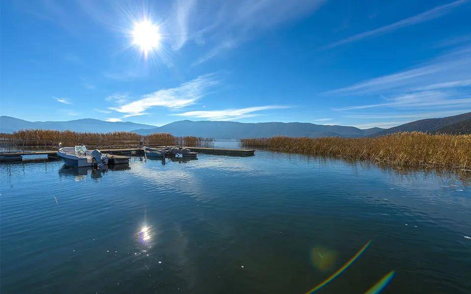 普雷斯佩湖群静卧希腊西北角,秋日候鸟掠过湖面,木桥连接小岛,渔村依偎岸边。走过650米浮桥登上圣阿基利奥斯岛,10世纪教堂遗址引人遐思;乘船可探寻希、阿、北马其顿三国交界,或是欣赏悬崖修道院的15世纪壁画,淡水鱼与红辣椒是当地 taverna 的招牌美味。